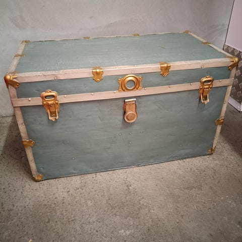 Antik rejsekiste i træ og metal