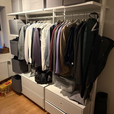 Garderoben sælges adskilt som ved køb og er nem at samle igen.