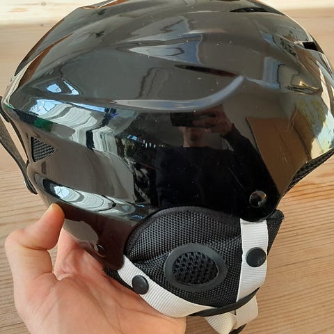 Har en meget lille bule i på toppen af hjelmen, men ellers kun meget få brugsridser