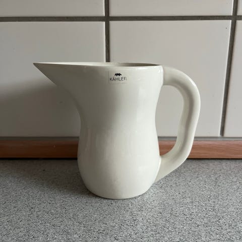2 Kähler Ursula tekopper . Hvide med grøn hank. Designet af Ursula Munch Pedersen og fremstillet hos Kähler keramik. Udgået af produktion . Begge intakte uden brugsspor. Prisen er pr. stk. Sender gerne.