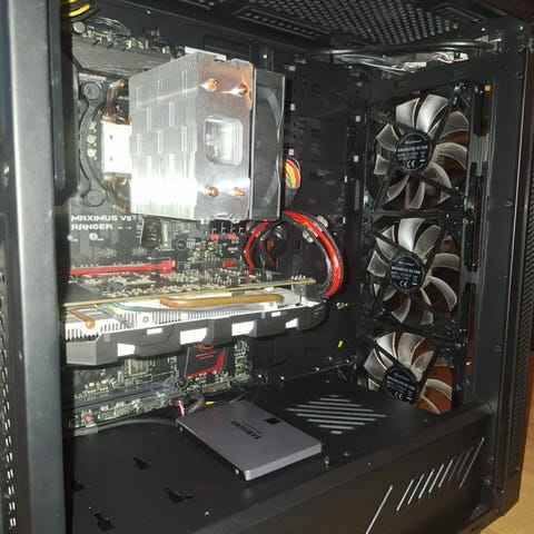 Kabinet: NZXT S340. Kabinettet står i flot stand og det er nemt at have med sig rundt. Det kommer med RGB controller og det kan køre i tonsvis af mønstre og farver.