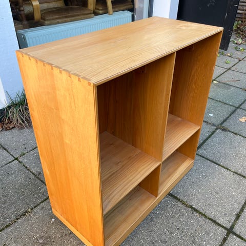 Retro bogkasse reol med snedkersamlinger fra 1970erne i massiv fyr