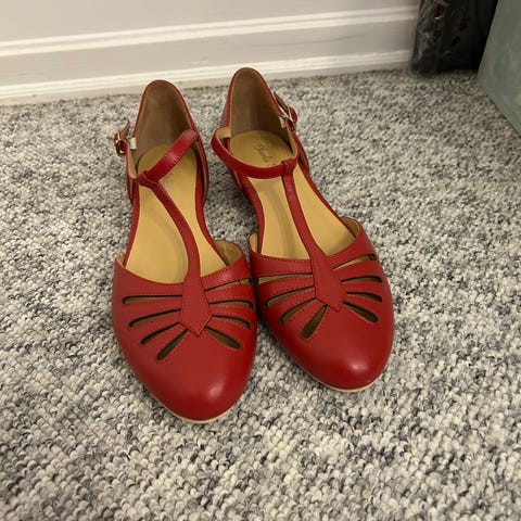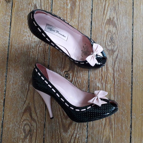 Brune/hvide Charlie Stone vintage stiletter i ægte læder str 39. Kun prøvet på indendørs, er desværre aldrig kommet i brug. Smart lukning af remmen over foden. Nypris 1349.