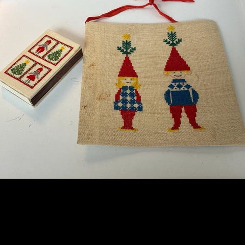 Broderet billede med julemotiv.