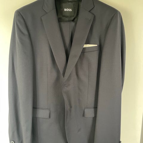 Hugo Boss blazer og bukser i grå farve, størrelse 48 til herre.