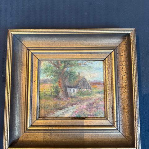 Olie på lærred – sign. “Van Reno.” – landskab – 30×20 cm