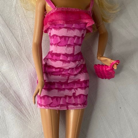 Barbie dukke med flere forskellige sæt tøj og tilbehør. Dukken har langt lyst hår og bevægelige led. Tøjet inkluderer kjoler, nederdele, bukser og forskellige farverige stykker, der passer til dukken. Dukken kan tale lidt italiensk tror jeg. Sælges kun samlet