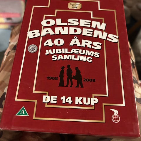 Olsen Banden:Samlede Kup DVD-samling indeholder samtlige film med Olsen Banden i en smart æske med alle motiver fra filmene. Kan sendes mod betaling og hentes på adressen.