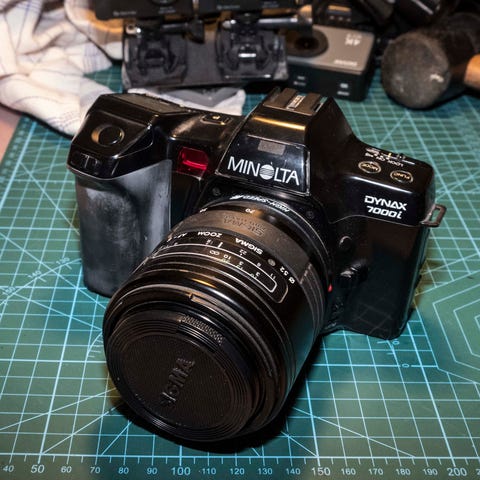Minolta Dynax 5D Kamera med Sony 18-70mm objektiv