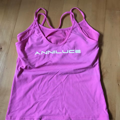 Desigual sports sæt til kvinder i størrelse M. Toppen er designet til sport og har en farve i nuancer af rød og bordeaux med mønstre og print. Materialet er glat og blødt , perfekt til afslapning, yoga eller anden træning.