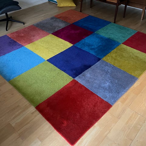 Lækkert, stort tæppe (100 % uld vævet på en bund af 100 % bomuld).