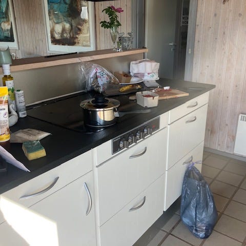 Hele køkkenet skal gerne hentes,senest i uge 9. Hvidevarer medfølger. Bosch ovn. komfur : Husqvarna. opvaskemaskine - Bosch. køleskab Electrolux. Bordplade sort Granit. emhætte medfølger.