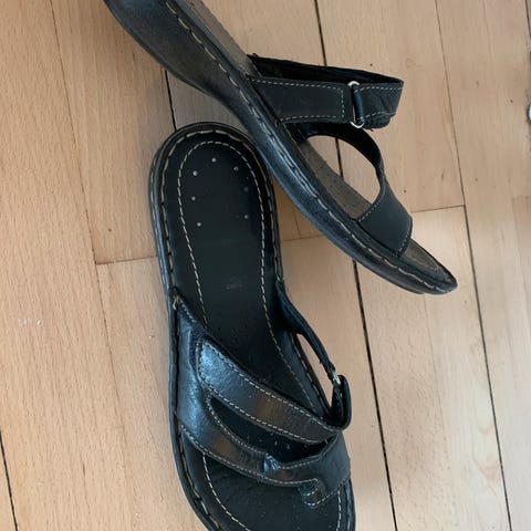Super lækker wedge sandal i sort skind både ind- og udvendig