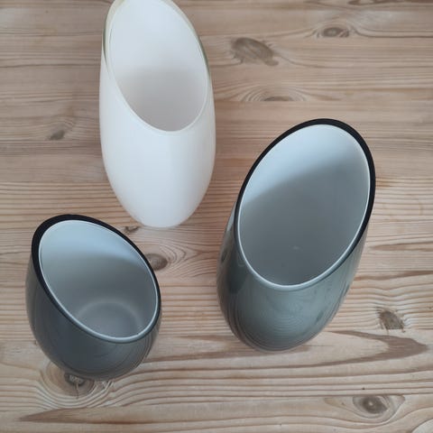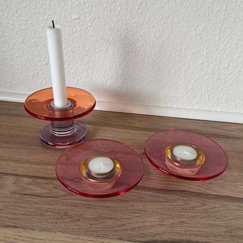 IKEA VISKA strearinlysholdere i forskellige farver (grøn, hvid, grå). Sættet indeholder glas med tilhørende "stage".