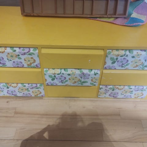 Fin grøn kommode med hvid skuffer. Fin til børneværelset.