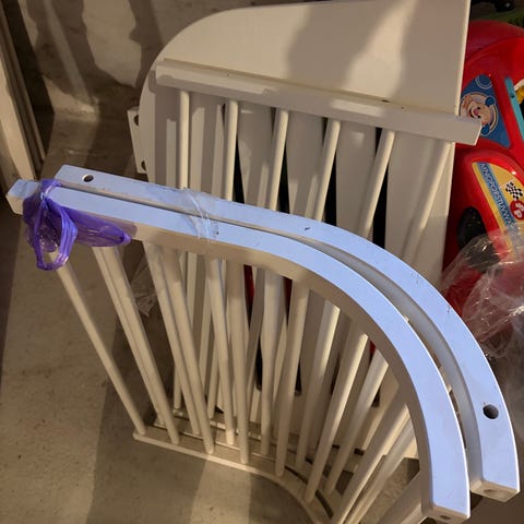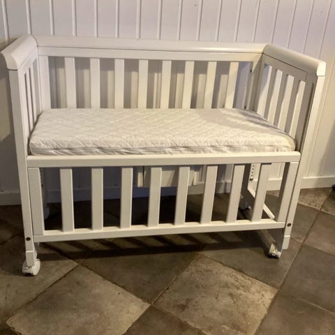 Rigtig fin bedside crib som også kan bruges som tremmeseng. Bunden kan indstilles så den passer til din seng.
