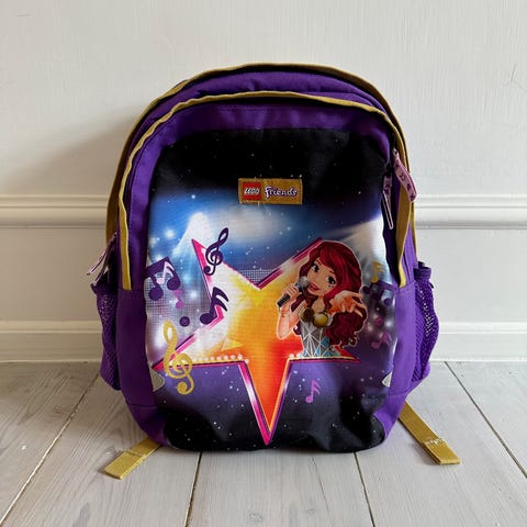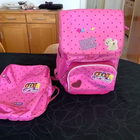 Skoletaske, Rummelig, Lego Friends, Super fin og velholdt skoletaske fra Lego Friends søger ny ejer. Der er masser af plads til bøger, penalhus og drikkedunk. Gymnastikpose medfølger