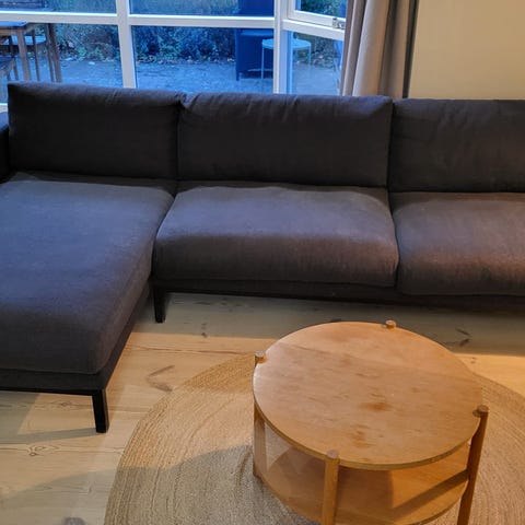 Rigtig fin og velholdt sofa fra Bolia. Hynder og betræk sidder stadig fast og fint og træværket med ben er meget velholdt. Betrækket har almindelige brugspletter, som endnu ikke er forsøgt fjernet. Alle fire betræk kan nemt tages af og vaskes. Fra dyrefrit hjem.