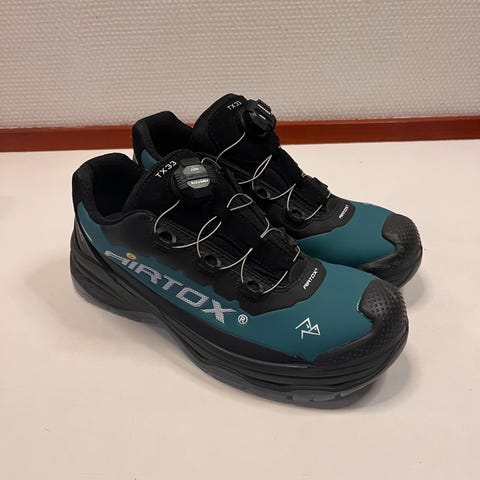 Sælger disse Airtox sikkerhedssko, de er brugt sparsomt og kun indendørs som elektrikker. Super komfort en sikkerhedssko i første klasse.