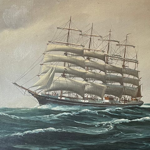 Et af Peder Chr. Pedersens oliemalerier af skoleskibet København, som var en femmaster bark, blev bygget i Leith, Skotland, og søsat den 24. marts 1921. Hendes jomfrurejse var den 30. september 1921 til København. Kunden var Østasiatisk Kompagni i Danmark. Under en rejse fra Buenos Aires den 14. december 1928 til Australien sank skibet med 59 mand om bord.