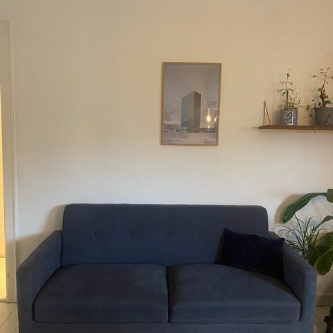 Velholdt blå sofa. Fejler ikke noget - vi har fået en større sofa.