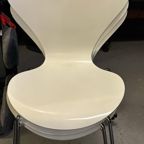 Jeg sælger tre nyrenoverede syverstole designet af Arne Jacobsen og produceret af Fritz Hansen.