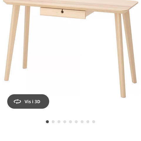 Flot og velholdt skrivebord i askefiner model Lisabo fra Ikea. Bordet har stået i soveværelset som "sminkebord" og mest til pynt , derfor helt uden brugsspor. Bordet er købt fra ny i 2022 og står i røgfrit hjem uden kæledyr.