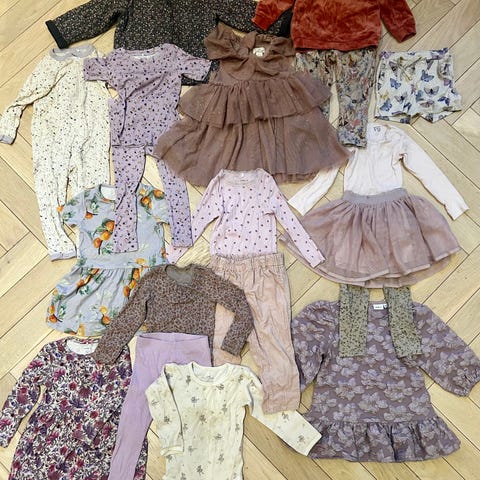 Konges Sløjd, molo, soft gallery mm børnetøj i størrelse 86 til pige. Farven er beige. Sættet indeholder forskellige beklædningsdele med bløde materialer egnet til børn.