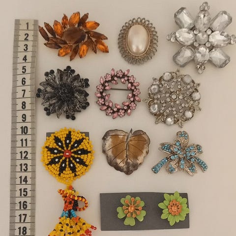 10 stk forskellige fine brocher sælges samlet til 100 kr.