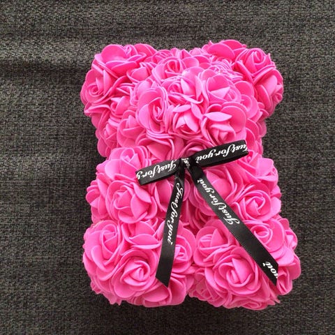 Sød hvid bamse med rose til Valentinsdag af Roses by Esma