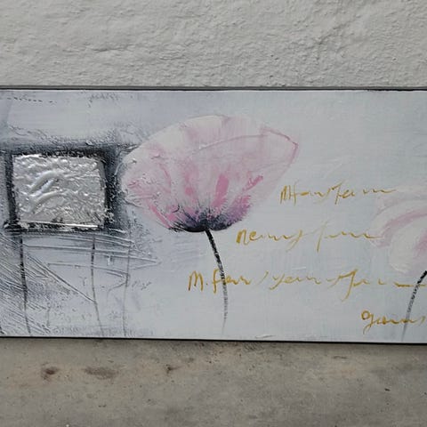 Lyserød blomst med hvid ramme. Str b: 24 h: 24.