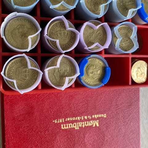 Jeg sælger hele min samling af uåbnede, originale bankruller med 50 øre fra det legendariske skifteår 2016 – året hvor møntmesteren skiftede midt i produktionen!