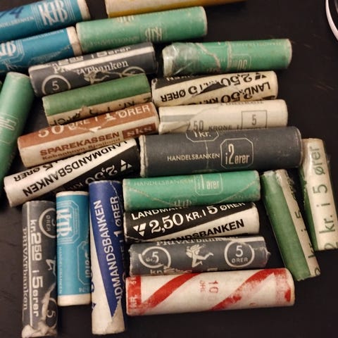 - 38 ruller med initialerne JS (møntmester Jørgen Strandgaard)