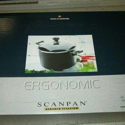 4. Scanpan gryde - 1,9 liter - med låg, dog ikke det originale, men et med hælde åbning.