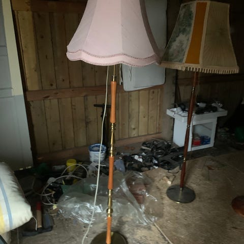 Standerlampe. Stor flerfarvet lampeskærm med drabant