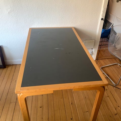 Dejligt skrivebord i metal og træ rør med plade med cognac farvet linoleum. I virkelig god stand.