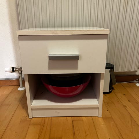 Rigtig flot natbord eller sidebord fra Ikea model BURVIK. Bordet er købt fra ny i 2022 og har fungeret som natbord og er derfor i rigtig flot stand. Bordpladen har en diameter på ø 40 cm. og en højde fra gulv til bordplade på 40 cm. Fra gulv til håndtag måler bordet 80 cm. Bordet har stået i røgfrit hjem uden kæledyr.