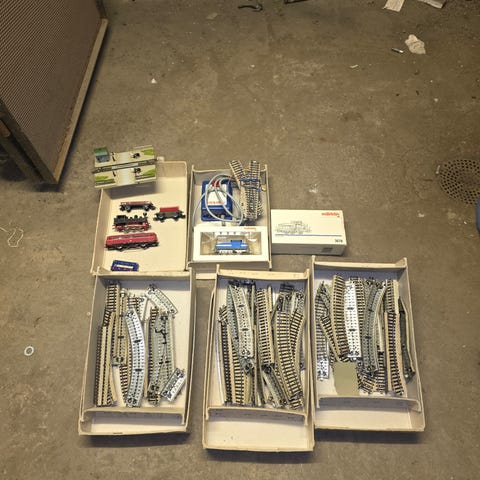 Originalt märklin tog fra 1950’erne. Sidst i funktion i 1990’erne. Der er skinner, tog, bygninger …. Noget for en samler?