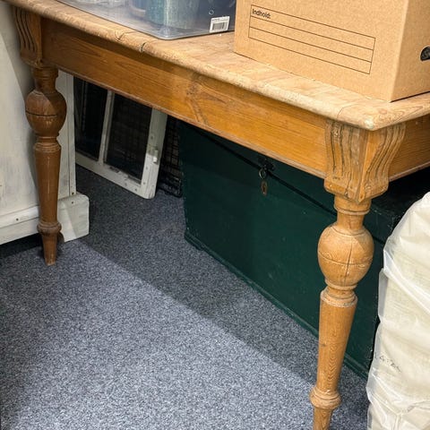 Virkeligt flot og rustikt Paris langbord i massiv eg, mørkbejdset, bredde 1,0 m, længde 2,20 m, 2 stk tillægsplader á 0,5 m (total længde 3,20 m), højde 79 cm. Er meget velholdt, og virkelig god kvalitet.