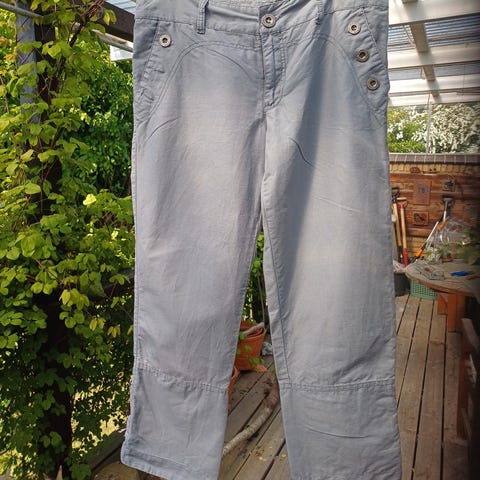 Bukser, STAFF , str. 42, Lysegul , 55% hør 45% bomuld, God men brugt, STAFF bukser i halvblank materiel med let kobber effekt på lysegult sfof