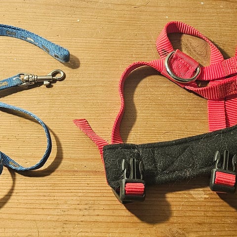 Kattesele med snor. Brugt sparsomt. Sender ikke.