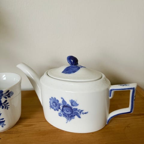 Rigtig fin Royal Copenhagen Blå Blomst tekande designet af Arnold Krog sælges for 600,00 kr. Den er i 1. sortering, hel og fin uden skader og skår, og er ca 25,5 cm lang og 16,5 cm høj. Kan sendes med GLS og DAO.