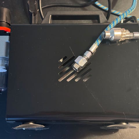 Iairbrush kompressor med integreret trykmåler og airbrush sæt. Kompressoren har håndtag for nem transport og er designet til præcis lufttilførsel ved airbrushing. Sættet indeholder en airbrush med opbevaringskasse. Velegnet til detaljeret malearbejde og hobbybrug.