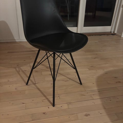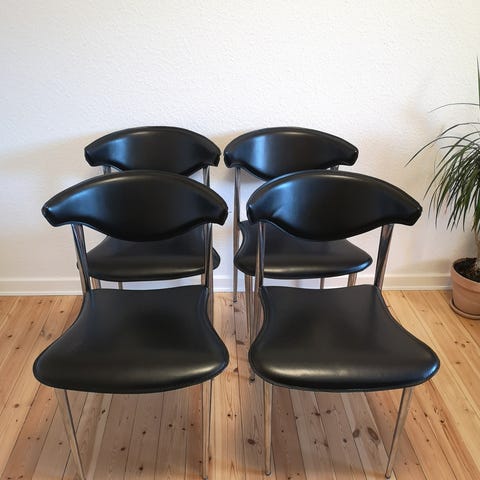 4 spisebordsstole fra Jysk. Model: KLARUP sort kunstlæder/sort