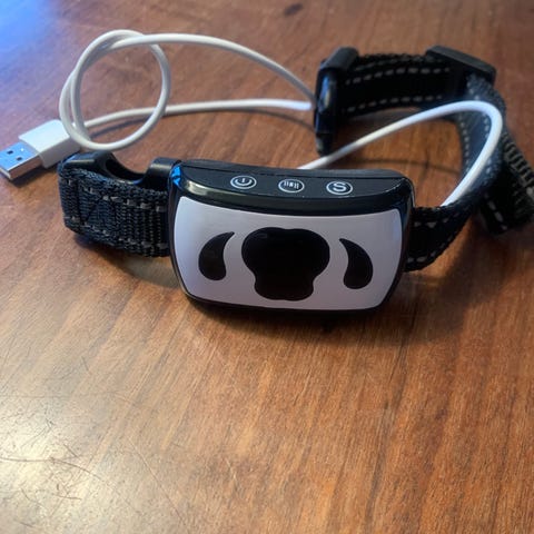 Anti-Go halsbånd med sprayfunktion til hunde. Halsbåndet er vandtæt og kan bruges både indendørs og udendørs. Det afskrækker irriterende gøen ved hjælp af lyd og vibrationer, der udløser en ufarlig spray. Halsbåndet har genopladeligt lithium-ion batteri med en varighed på normalt 40 til 50 timer og inkluderer en USB-oplader. Det er designet til at aktivere hundens egen gøen og forhindre falsk aktivering fra andre lyde eller hunde. Velegnet til hunde over 3,6 kg og ældre end 6 måneder. Halsomkreds på maks. 68,8 cm.