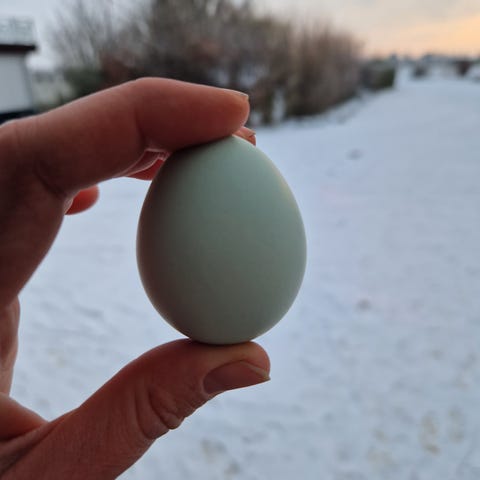 Rugeæg fra Creme legbar og engelsk araucana høns. Går sammen med min creme legbar hane.