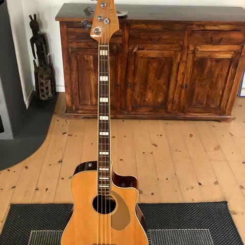 Lækker akustisk bas der lyder fremragende. Til større setups kan via dens Fishman pickup (ned tuner) kobles på diverse anlæg og forstærkere.