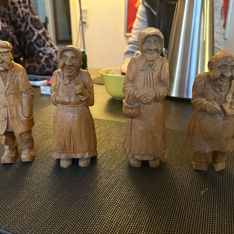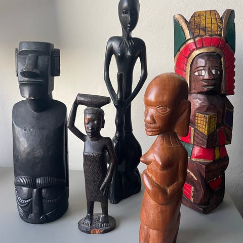 Sælger en flot samling håndskårne vintage træfigurer, købt i Sri Lanka for mange år siden (anslået 1950’erne–1970’erne).
