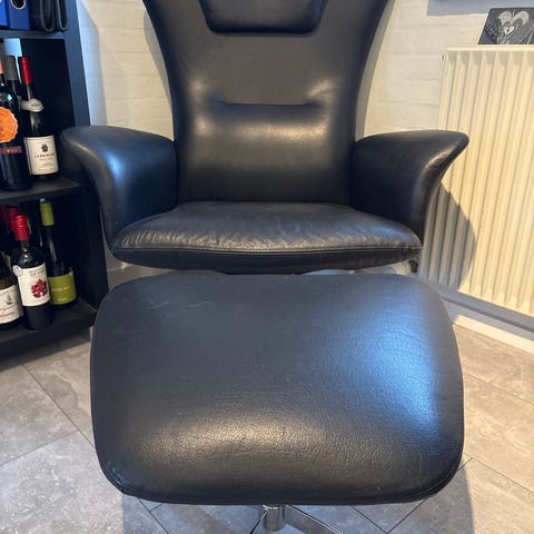 Lænestol i skind med vippe/glidefunktion