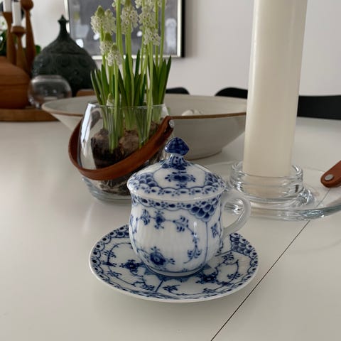 Her har vi bouillonkopper der er fantastiske til forretter, desserter og selvfølgelig til suppe😋 ældre Musselmalet med masser af historie.